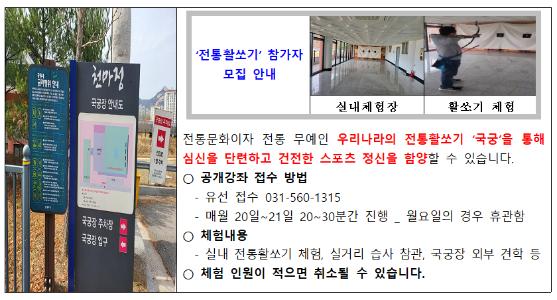 개인 활, 화살 (대여불가) / 프로그램 운영 시 사대 이용이 제한될 수 있음 |